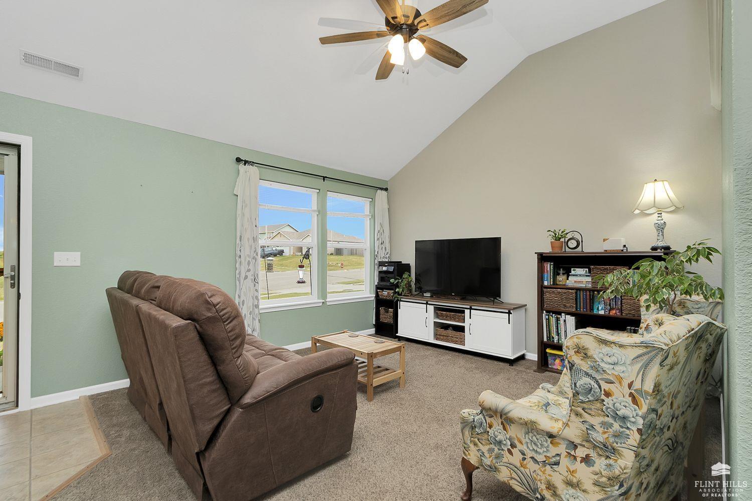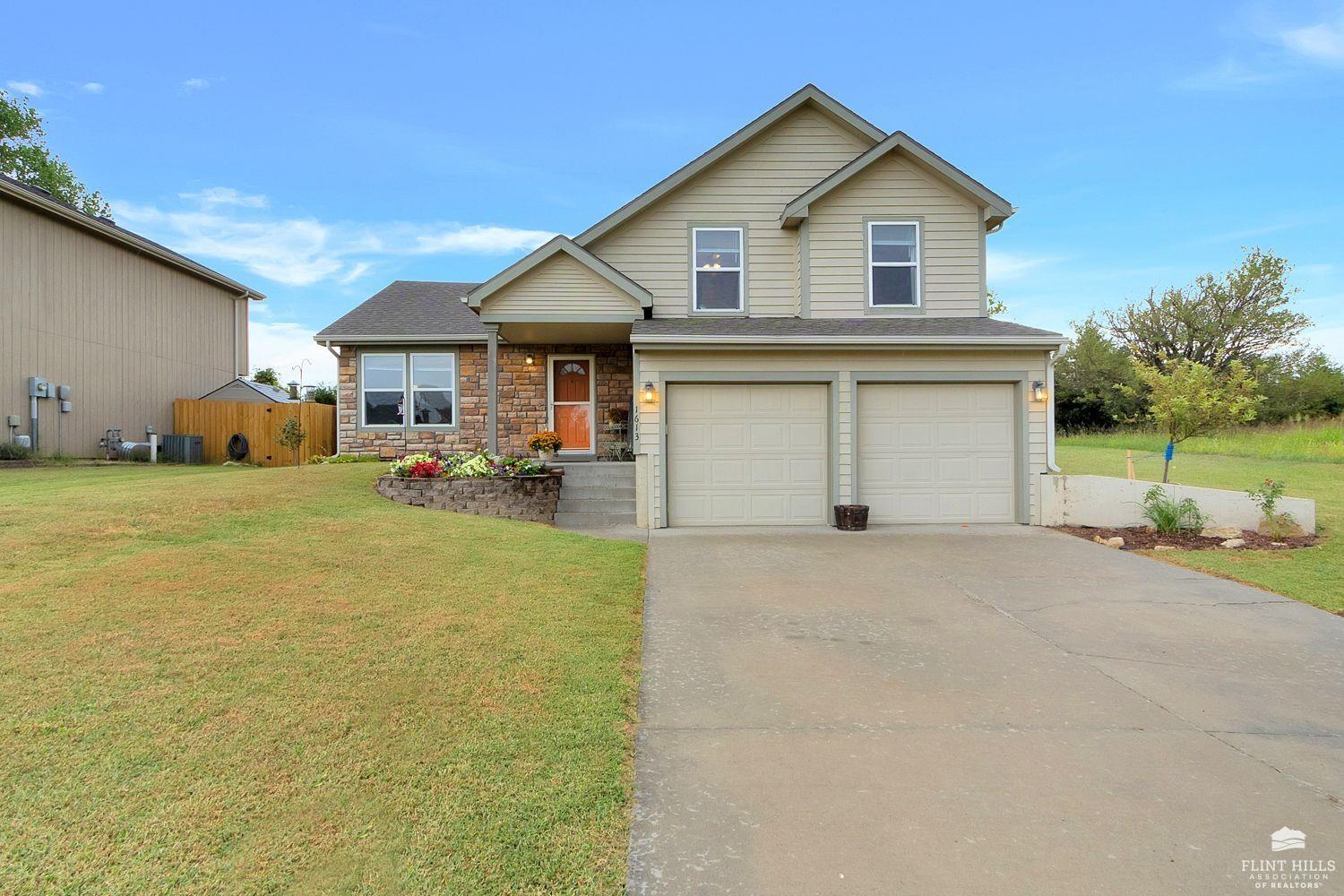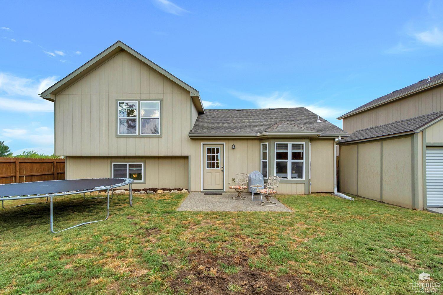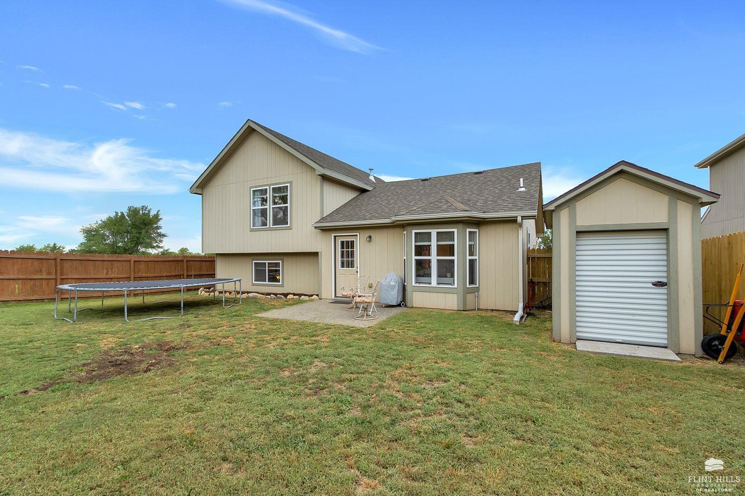 Start 2026 with your New HOME! Well maintained 3 bedroom, 2.5 bath home offering comfortable living spaces and a layout that flows easily. The main level features vaulted ceilings, great natural light, and an open feel from the living room into the eat in kitchen. The kitchen offers ample cabinet space, a pantry, and room for a full dining table, ideal for everyday living or entertaining. Upstairs you’ll find all three bedrooms, including a spacious primary suite with tray ceiling, ceiling fan, and private bath. Additional bedrooms are nicely sized and share a full hallway bath. The daylight basement adds valuable finished space and includes a second living area with a fireplace, perfect for a family room, home office, or hobby space, with additional storage available. Enjoy a fully fenced backyard with a patio area for relaxing or grilling, plus a detached storage shed for extra storage. Contact Peggy for a personal showing 785-706-3303.