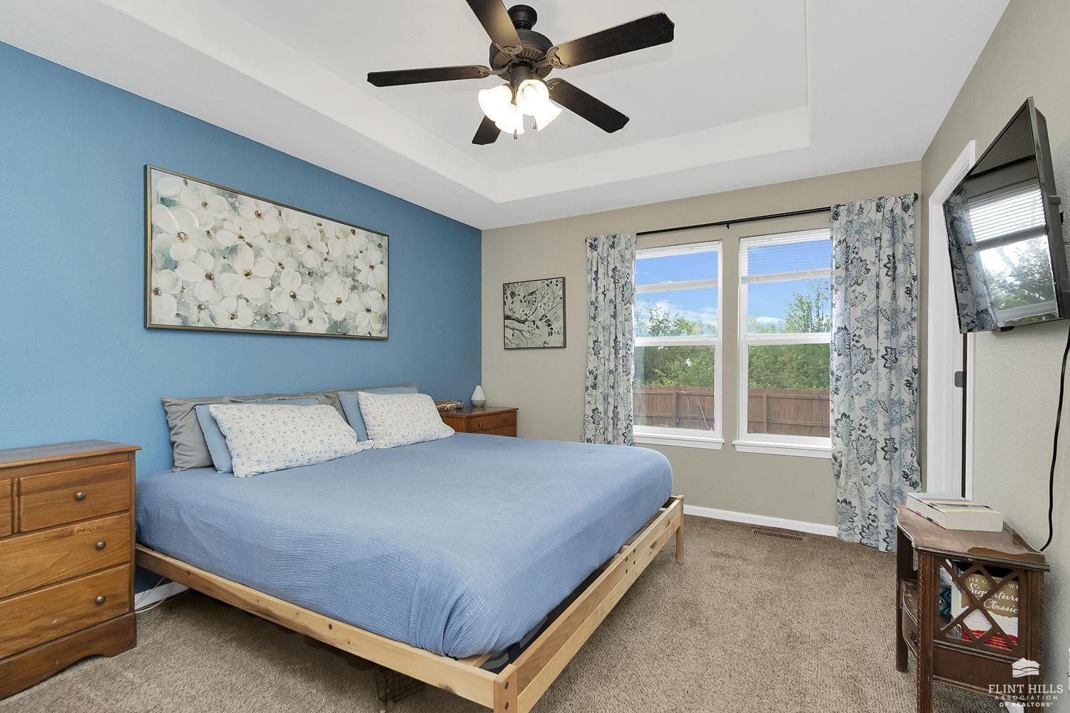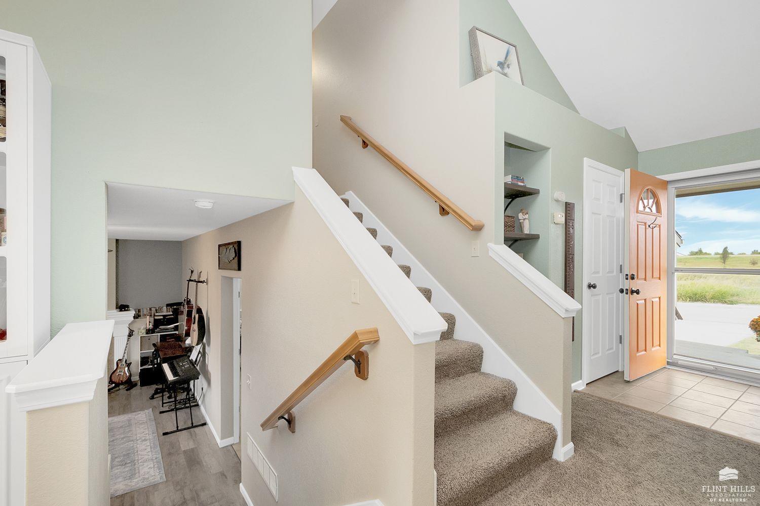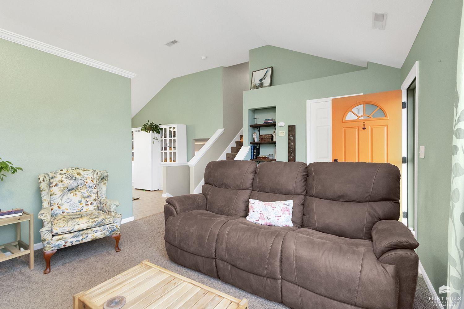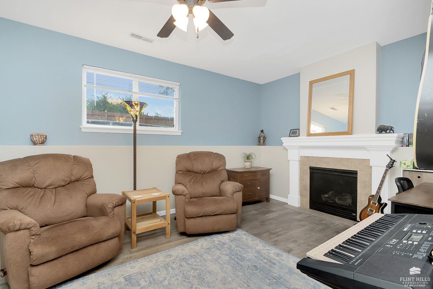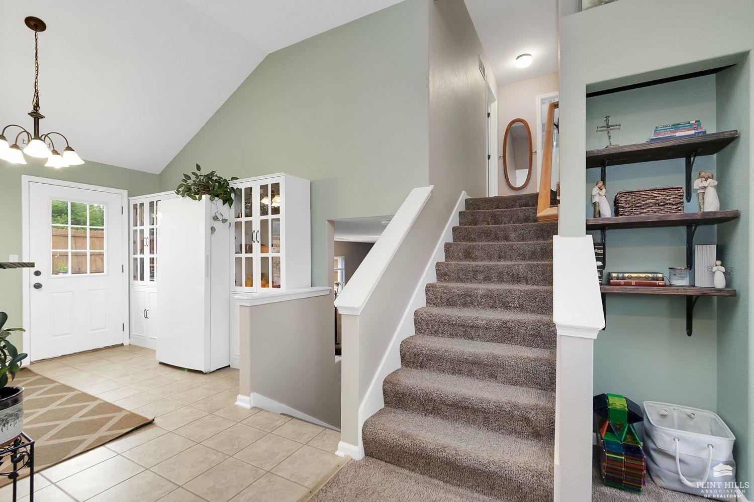 Start 2026 with your New HOME! Well maintained 3 bedroom, 2.5 bath home offering comfortable living spaces and a layout that flows easily. The main level features vaulted ceilings, great natural light, and an open feel from the living room into the eat in kitchen. The kitchen offers ample cabinet space, a pantry, and room for a full dining table, ideal for everyday living or entertaining. Upstairs you’ll find all three bedrooms, including a spacious primary suite with tray ceiling, ceiling fan, and private bath. Additional bedrooms are nicely sized and share a full hallway bath. The daylight basement adds valuable finished space and includes a second living area with a fireplace, perfect for a family room, home office, or hobby space, with additional storage available. Enjoy a fully fenced backyard with a patio area for relaxing or grilling, plus a detached storage shed for extra storage. Contact Peggy for a personal showing 785-706-3303.