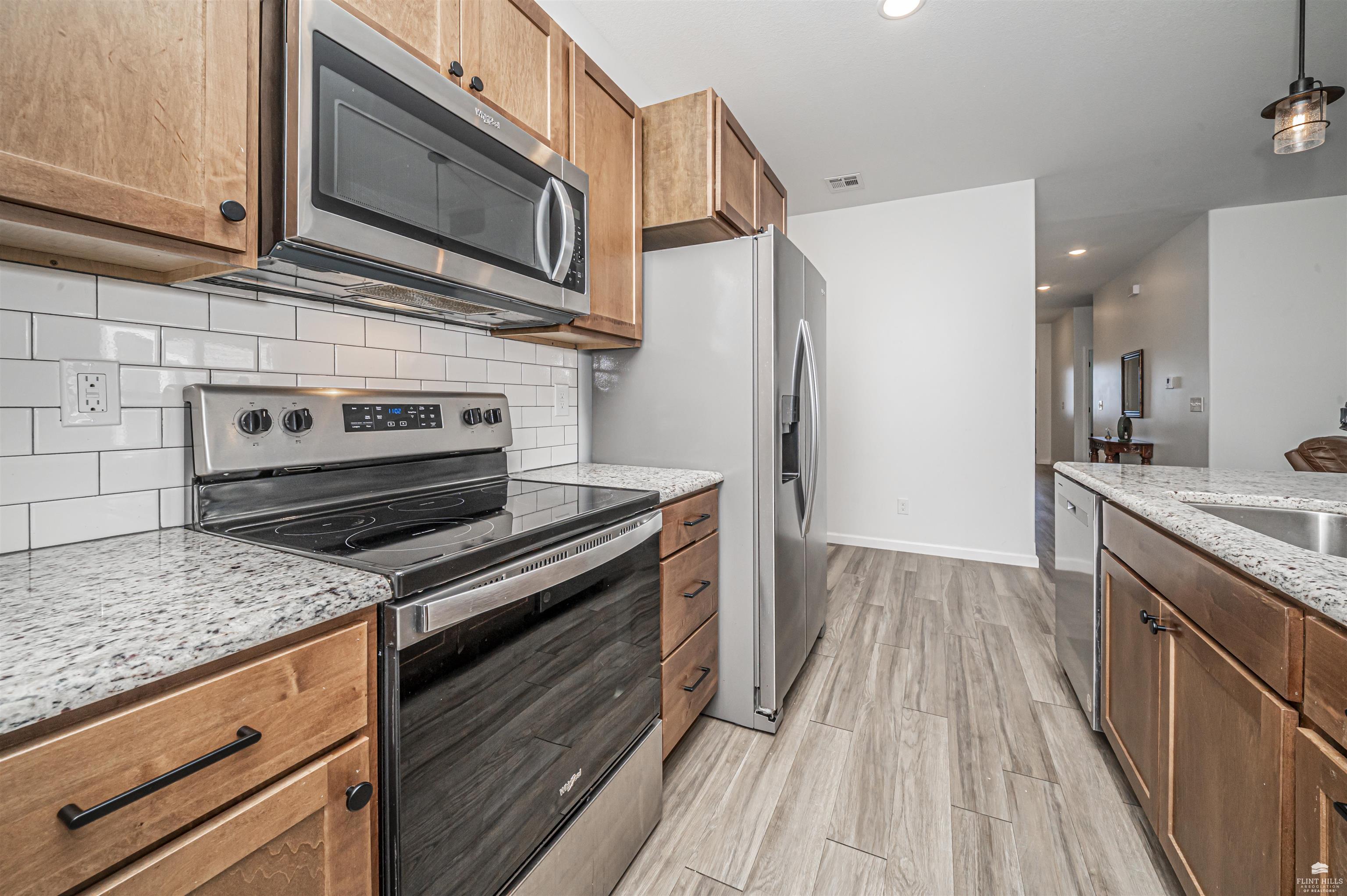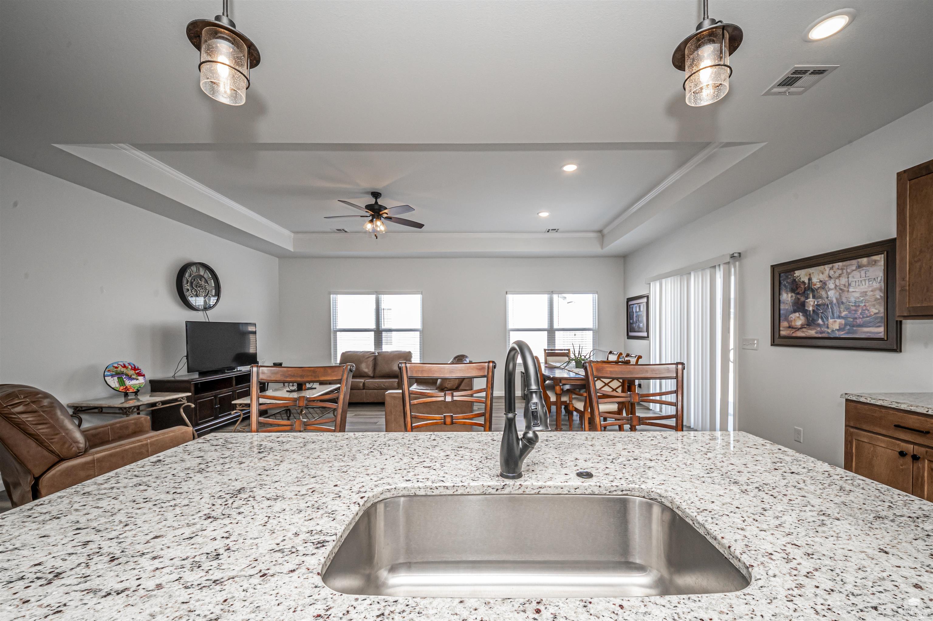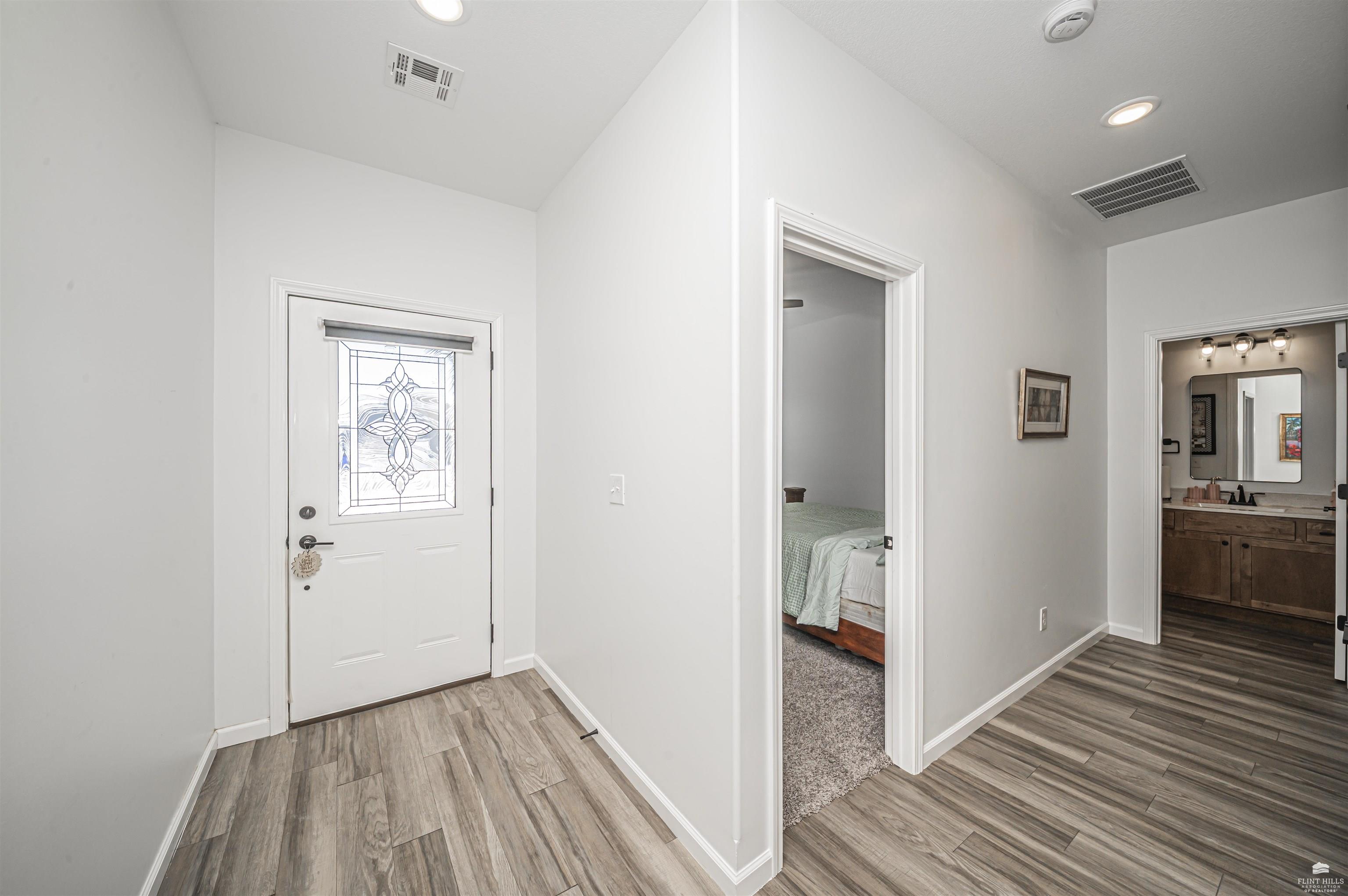 If you’ve been waiting for a home with upgraded finishes, a functional layout, and NO special taxes, 2507 Wren Lane delivers. This 3-bedroom, 2-bath home offers 1,690 sq ft of open-concept living space connecting the living, kitchen, and dining areas. The kitchen features custom soft-close cabinetry, granite countertops, stainless steel appliances, and a tile backsplash. Luxury vinyl flooring runs through the main areas, with carpet in the bedrooms. The primary suite includes a private bath with onyx vanity countertops and a tiled shower. Additional highlights include a built-in saferoom, insulated 2-car garage with openers, cultured stone exterior accents, and finished yard with landscaping. Washer and dryer negotiable. Located on the west side next to Junction City High School and Junction City Middle School, with convenient access to Milford Lake and Fort Riley. This one is worth your time. Schedule your personal tour today.