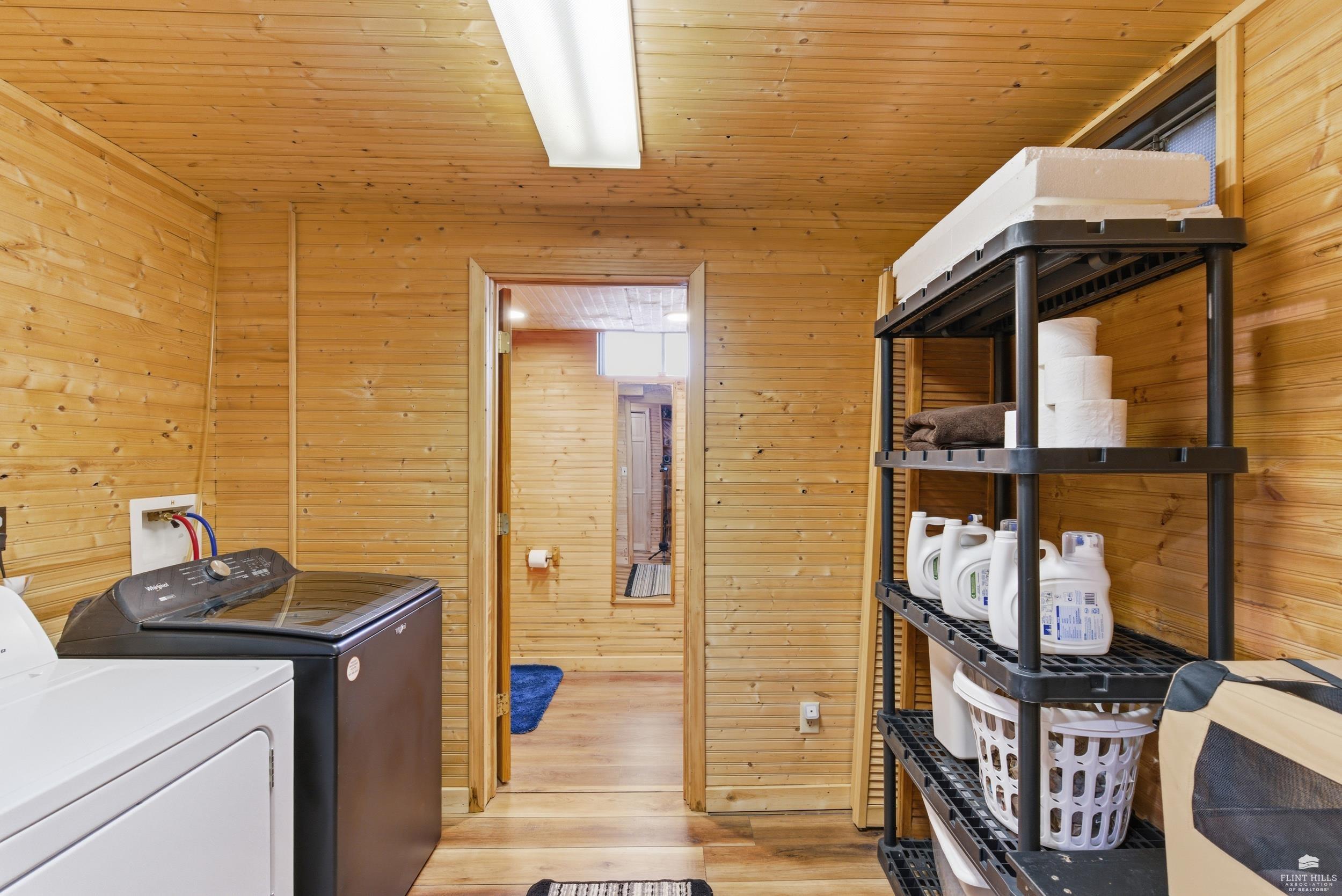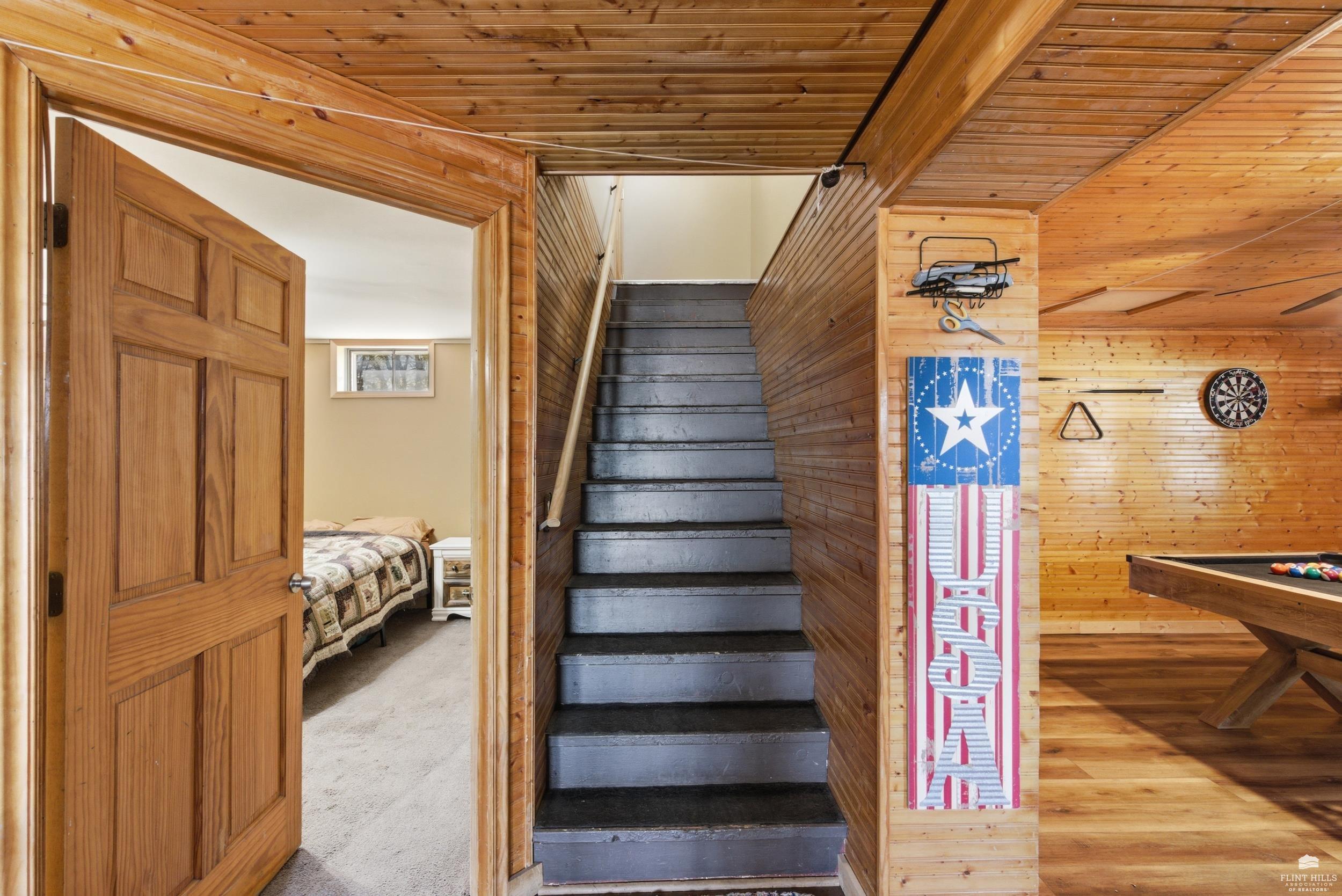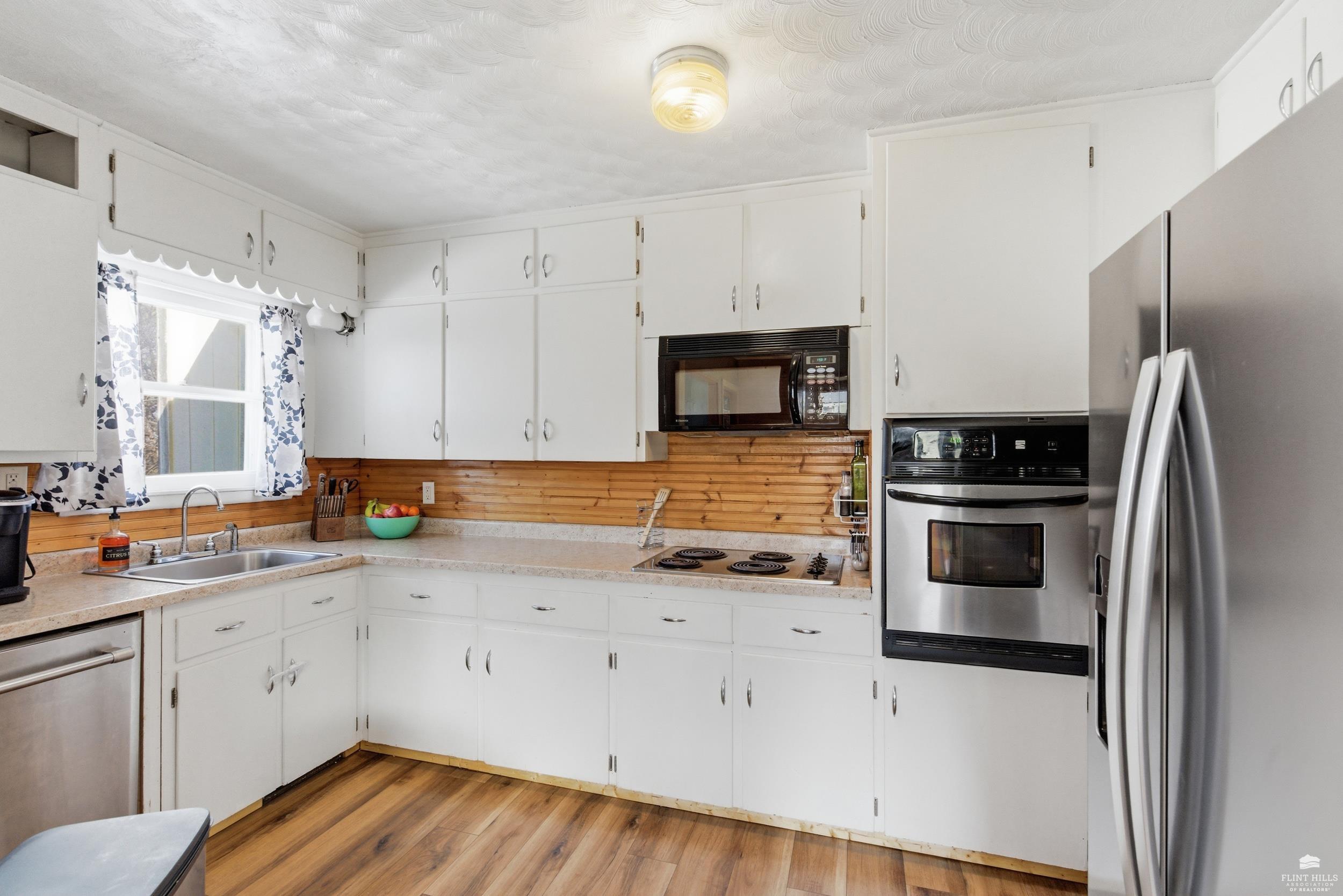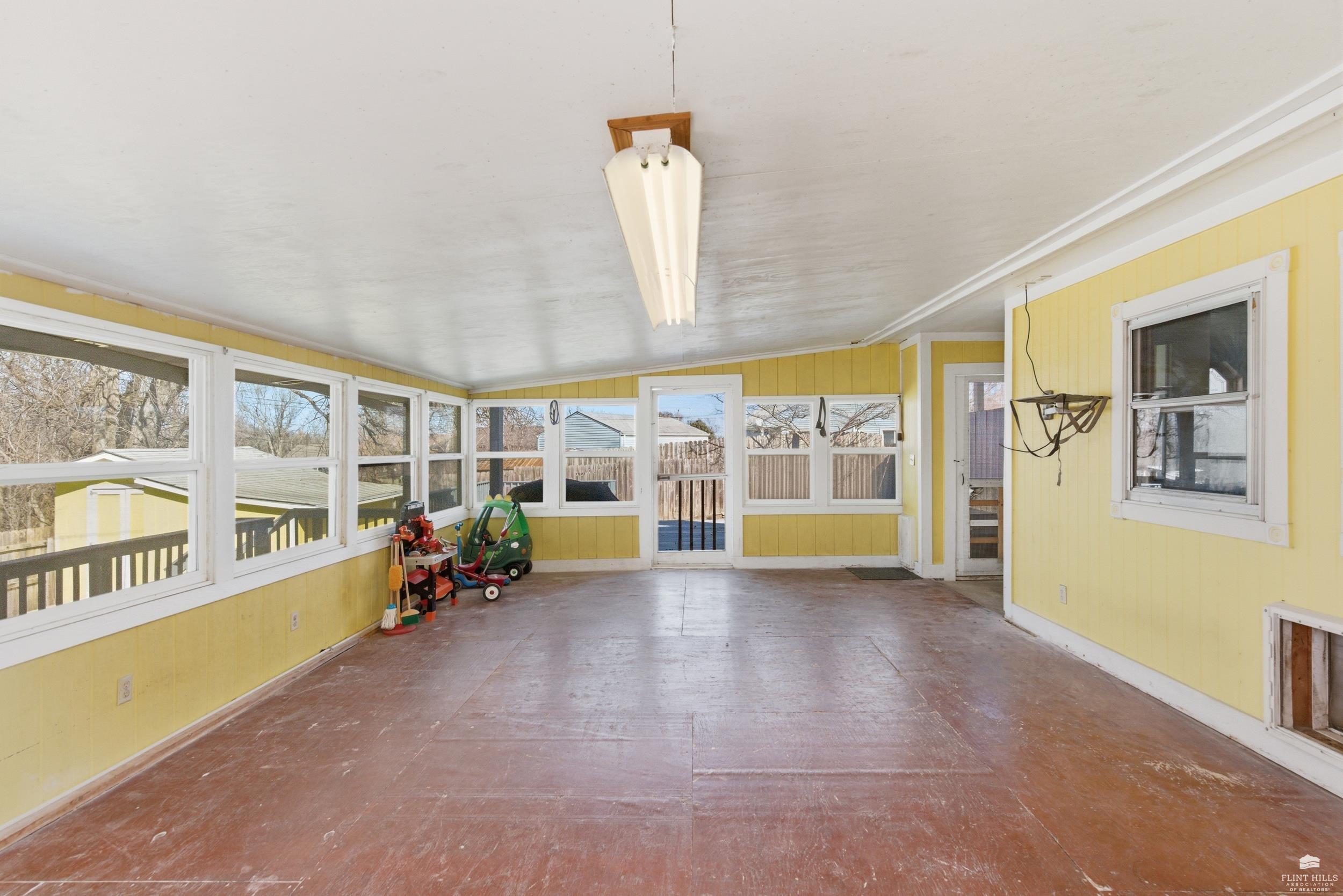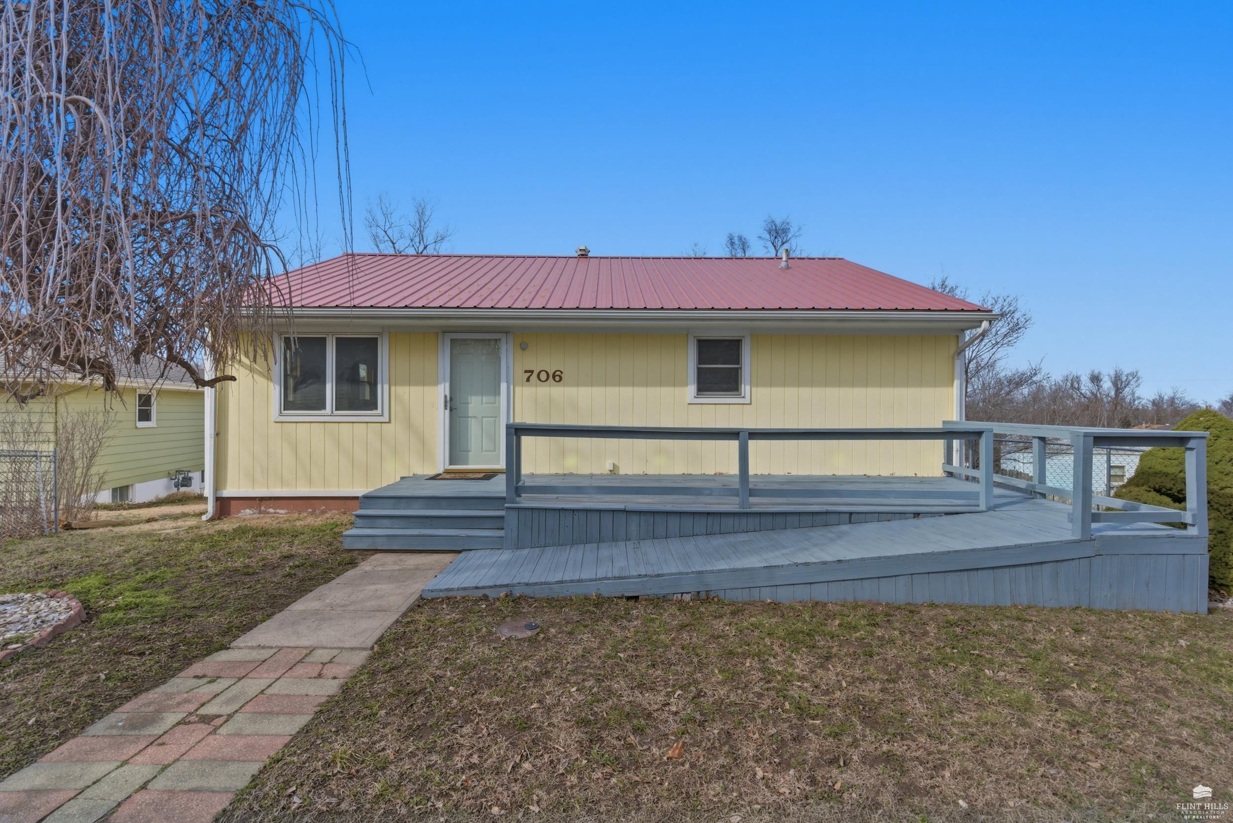PRICE IMPROVEMENT! Welcome to 706 W. Vine St — a spacious, character-filled ranch home nestled near Ft. Riley in the heart of Junction City! This 4 bed, 2.5 bath home features a cabin-like design with great natural light. The main level hosts 2 bedrooms and 1.5 bathrooms, plus a spacious living/dining area and kitchen with ample storage. The walkout basement includes another 2 bedrooms, living room, bathroom, laundry room, and multi-purpose room with access to the enclosed back patio that extends the entertaining space inside and out! The home offers many benefits and updates, including new fridge, new toilets, new washer/dryer, new carpet, paint, and trim in the main bedroom, added shelving in closets, wood stove, high efficiency HVAC, GFCI outlets, and freshly painted deck. Outside offers fenced front and back yards, large driveway, low maintenance yard, and storage shed with electricity! Schedule your tour today!