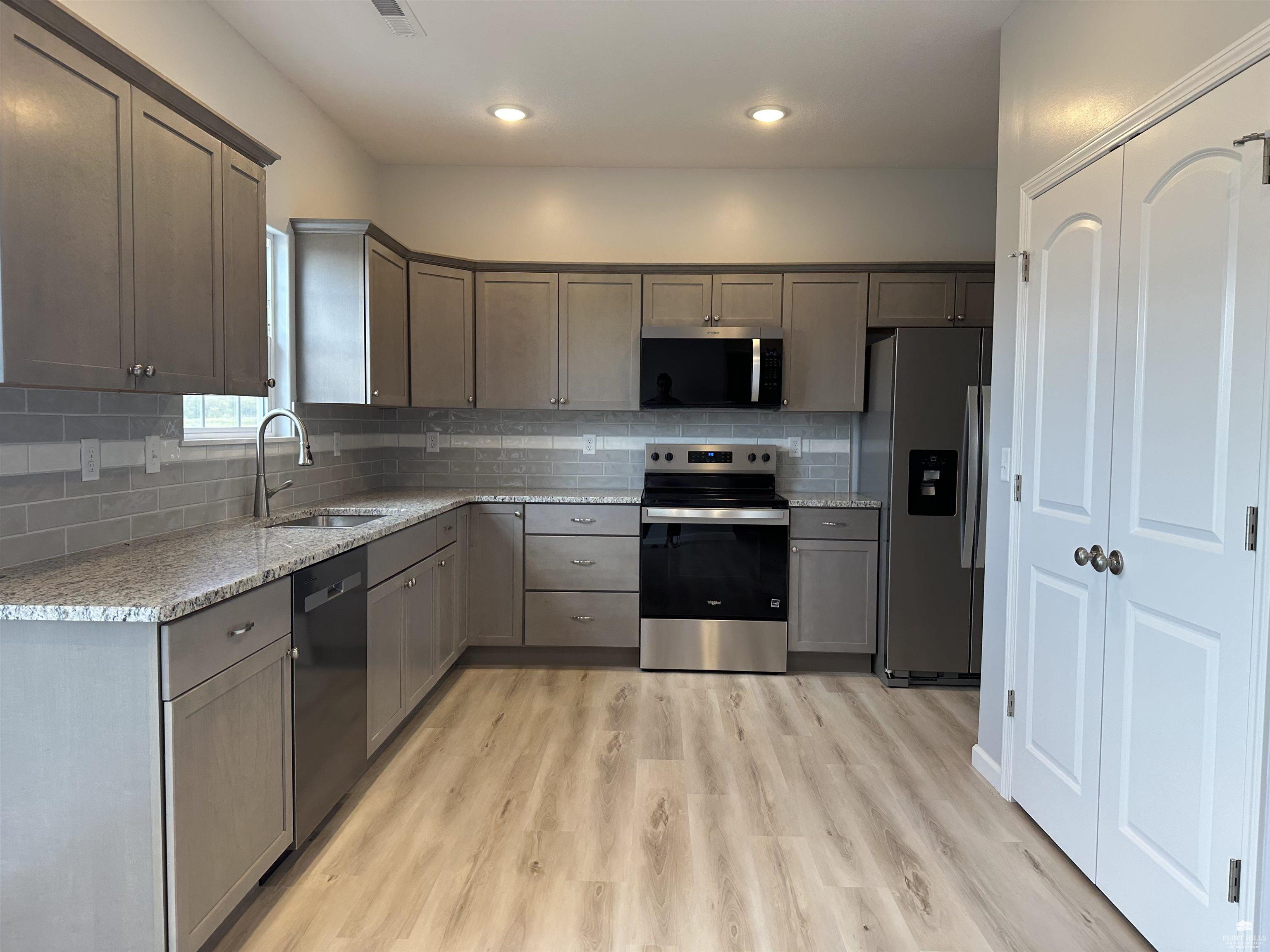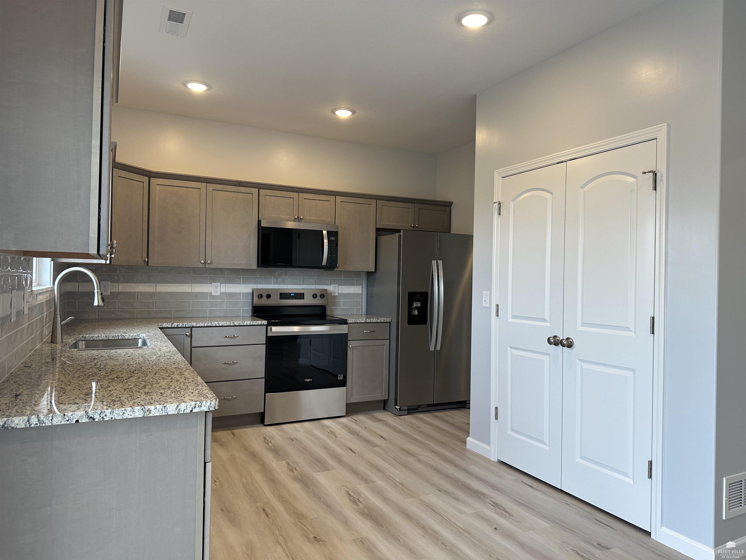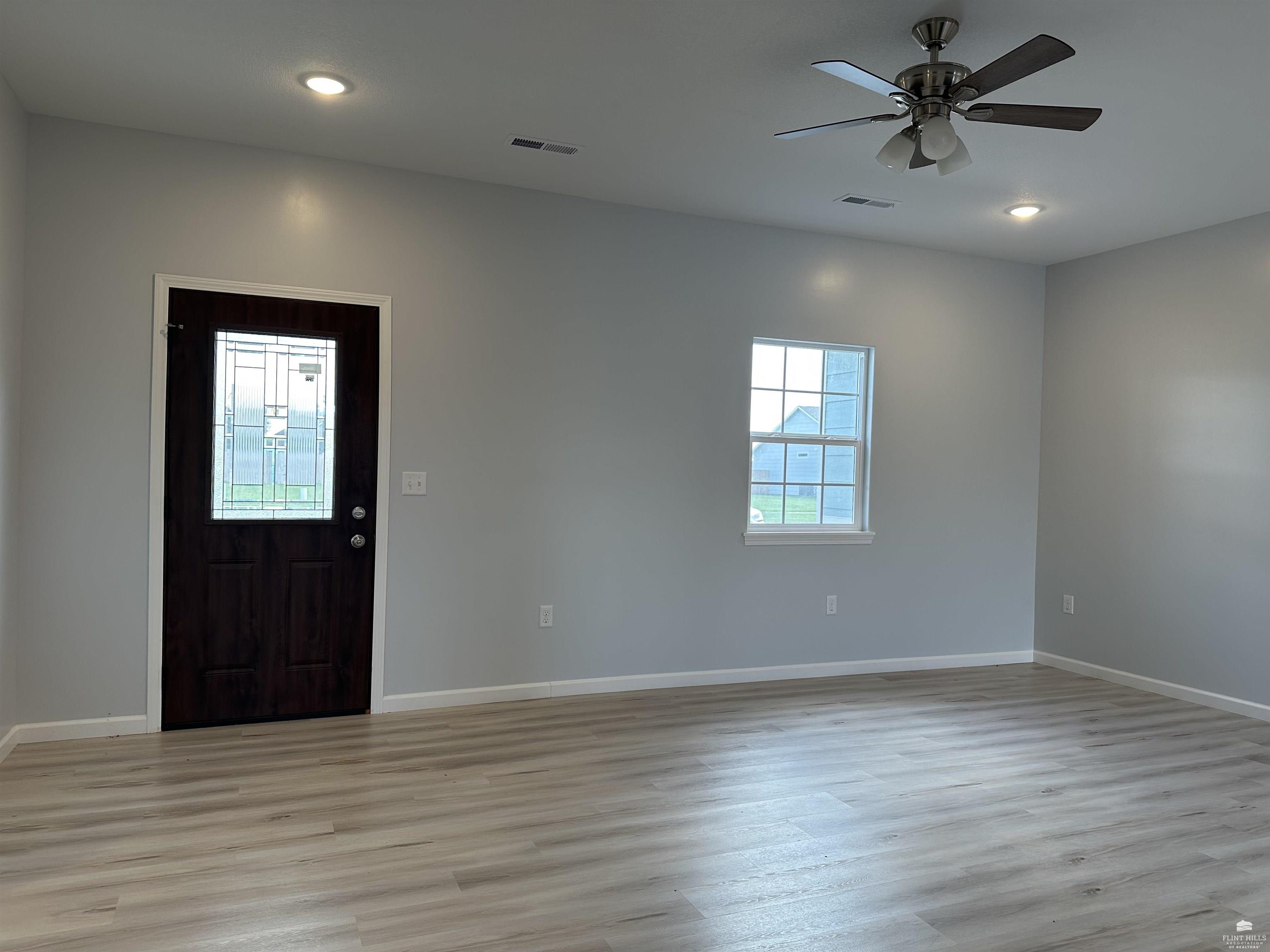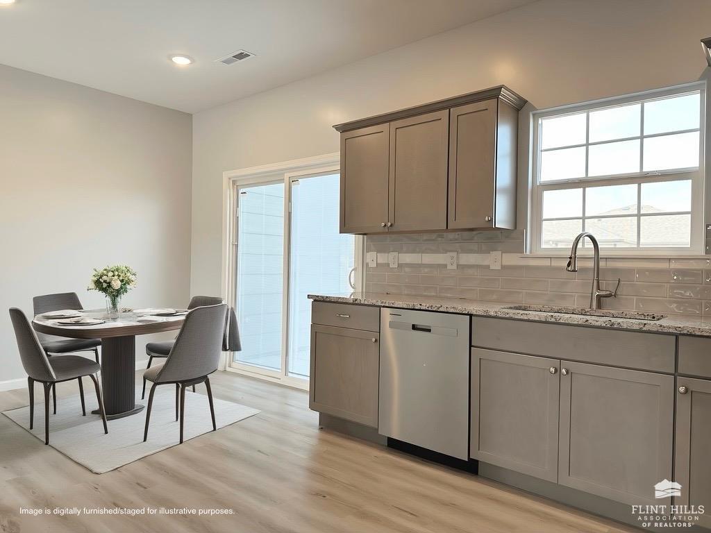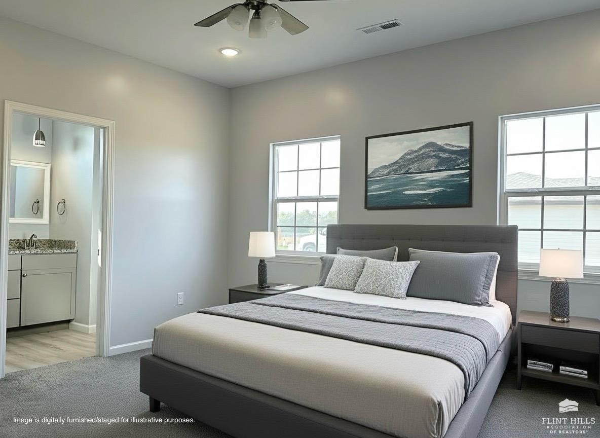 New construction home on a 0.34-acre lot in Willow Glen with no home to be built between this one and the neighbor—offering added privacy! This split-bedroom floor plan features an open living room with a cozy fireplace, dining area, and kitchen with granite countertops and a pantry. Enjoy LVP flooring throughout. The master suite includes a tile shower, dual sinks, and a walk-in closet with built-in shelving. Bedrooms 2 & 3 have closets with shelving, and the laundry room provides extra storage as well. A safe room adds peace of mind during Kansas storms. Community Park and pool included. Call/Text Peggy directly for your personal tour or more information: 785-706-3303.