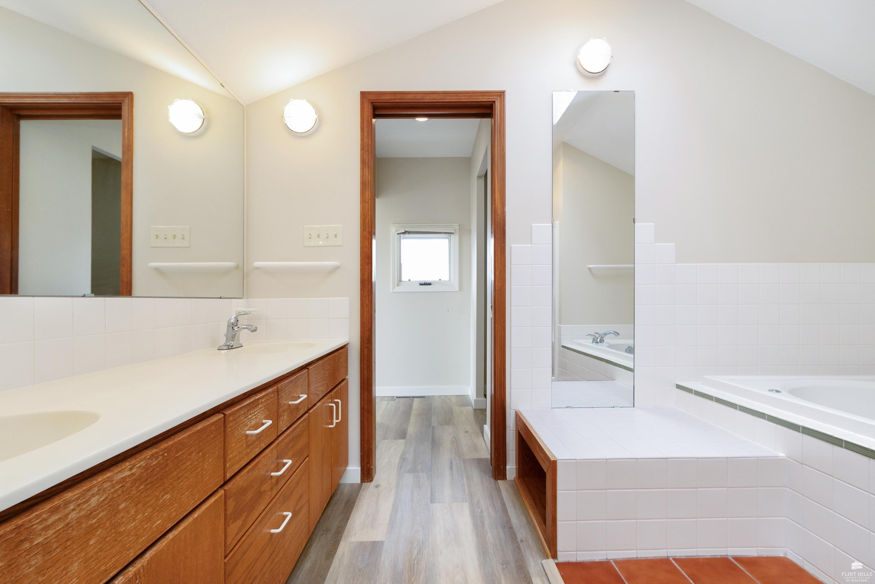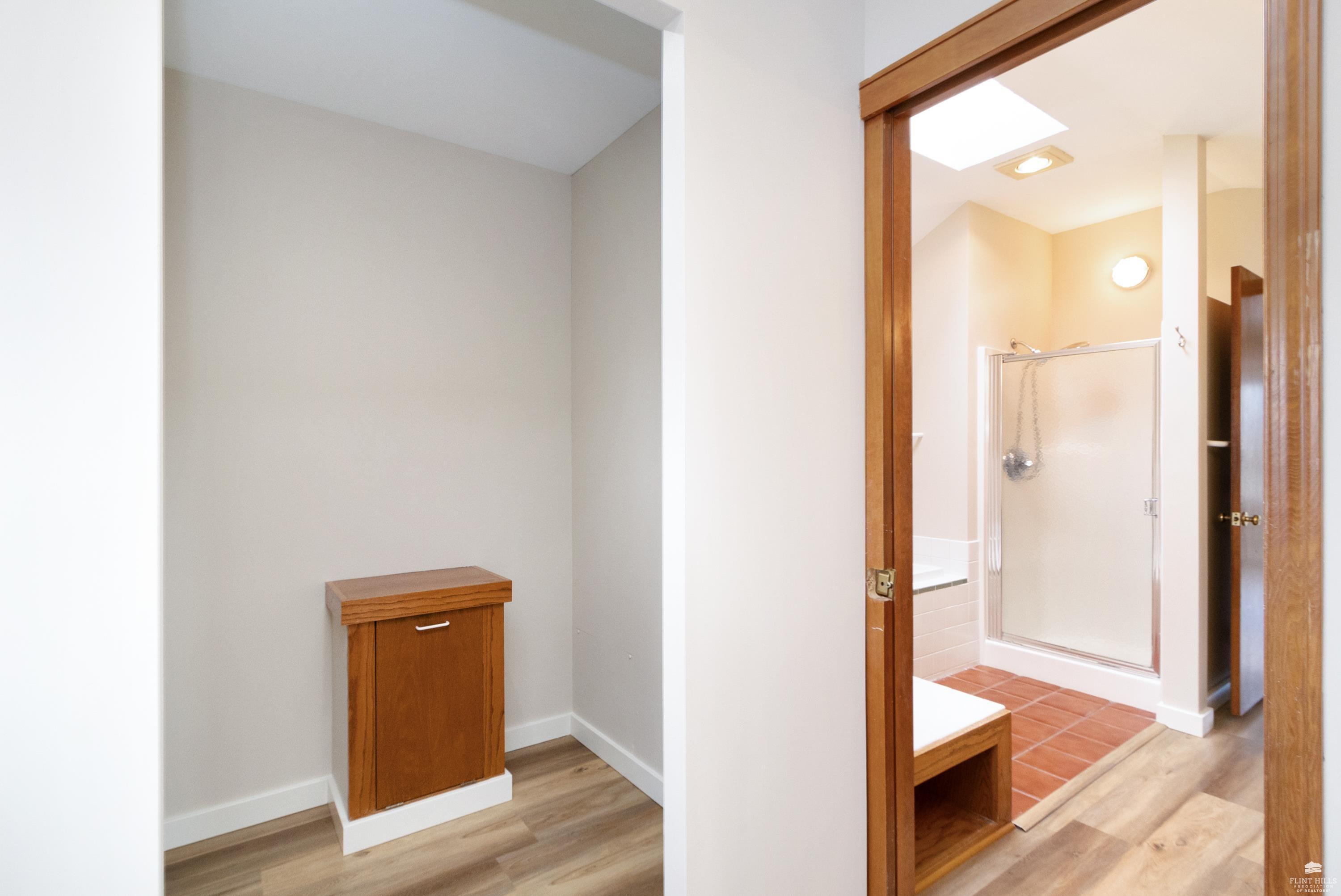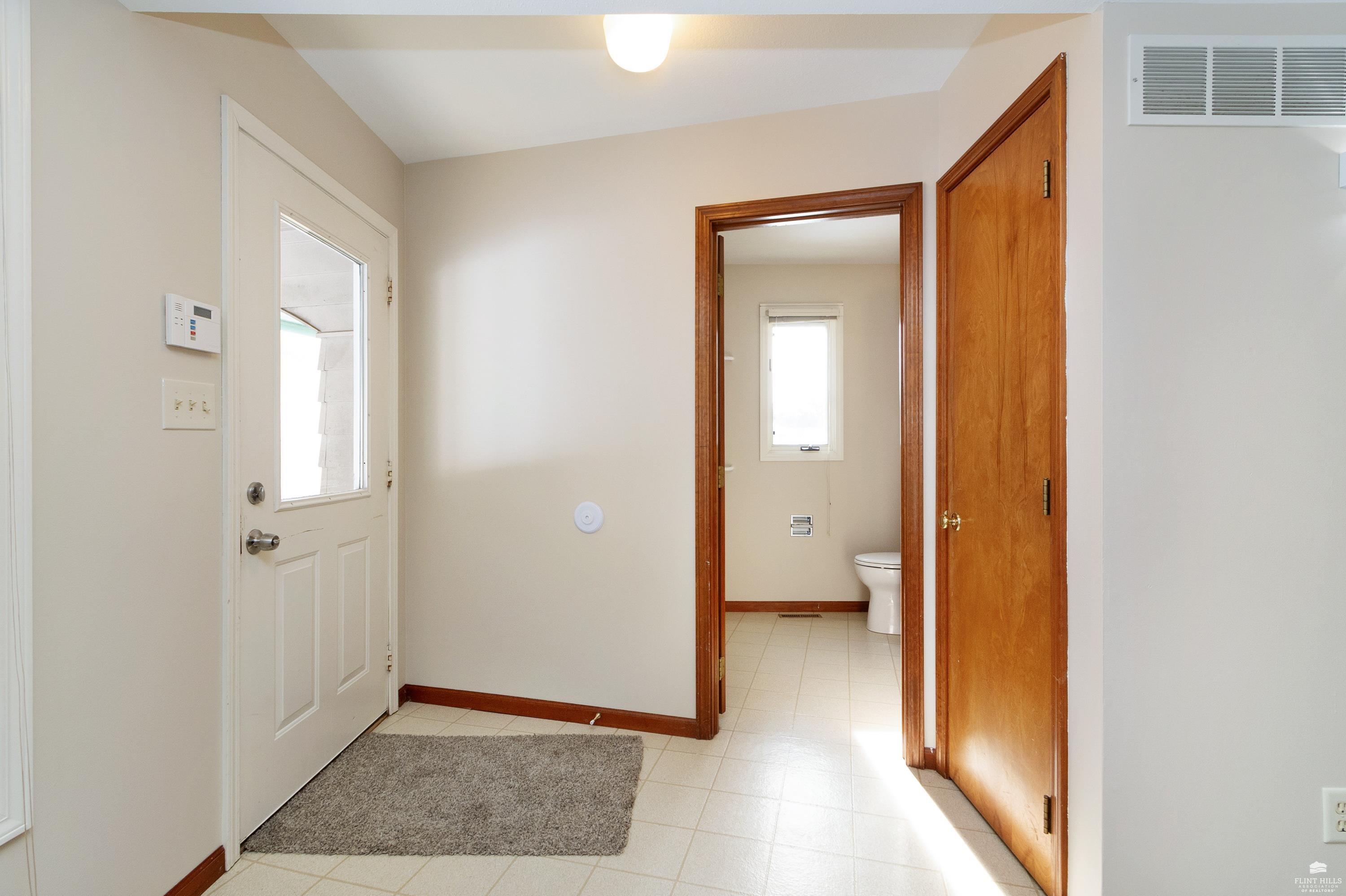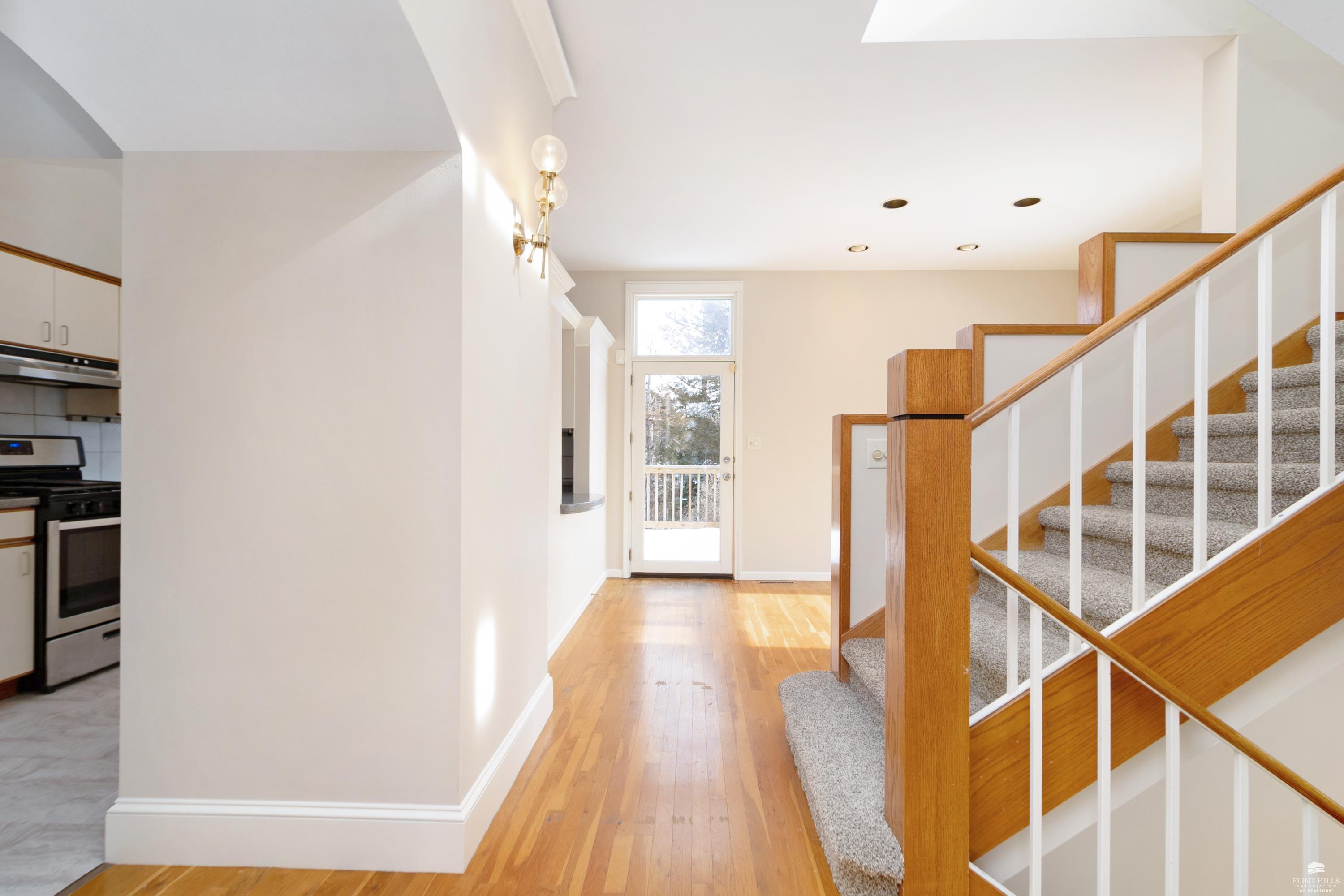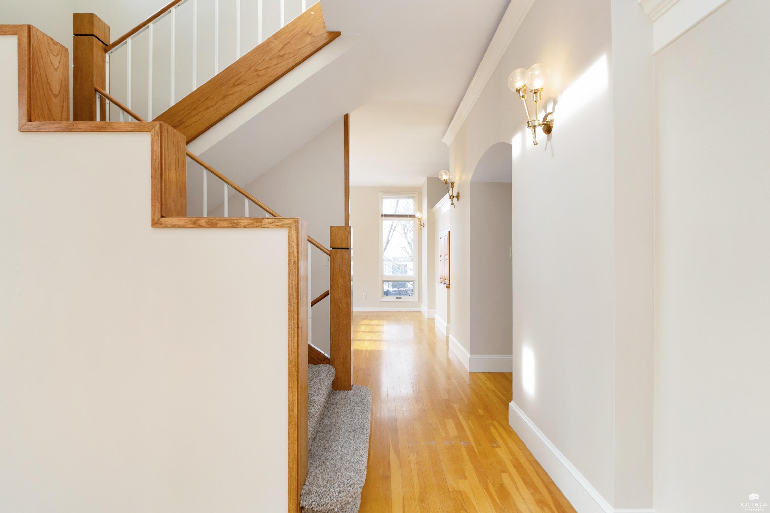OPEN SUN FEB 8 12:00-1:00 PM Step into this three-plus bedroom contemporary home where dramatic design meets everyday functionality. A soaring entryway welcomes you inside, opening to living and dining areas highlighted by 9-foot ceilings and an outstanding multi-level architectural layout that offers both visual interest and an exceptional amount of built-in storage throughout. The entire upper level is dedicated to a private primary retreat, creating a true sanctuary. The spacious primary sleeping area features a walk-in closet and a generous 11'5" x 9'10" primary bath, complete with an oversized Whirlpool tub, shower, double vanity, and an impressive amount of custom storage. Connected to the primary suite is a 23'5" x 15'6" sitting room or office, offering incredible flexibility. With its own private entrance and closet, this space can function as a fourth bedroom. Situated on a private corner wooded lot with panoramic views. Close to KSU and minutes from the Fort Riley Ogden Gate.
