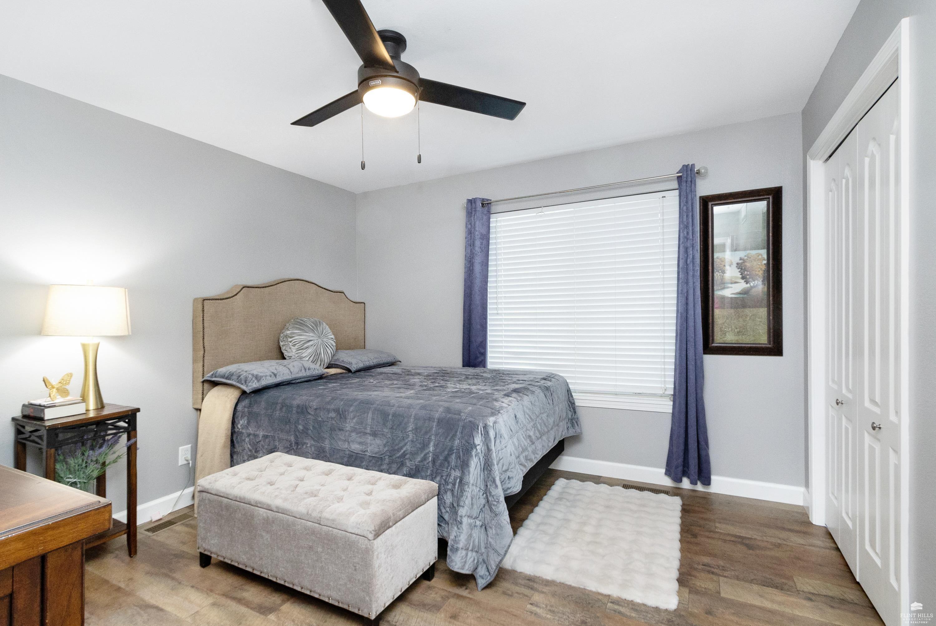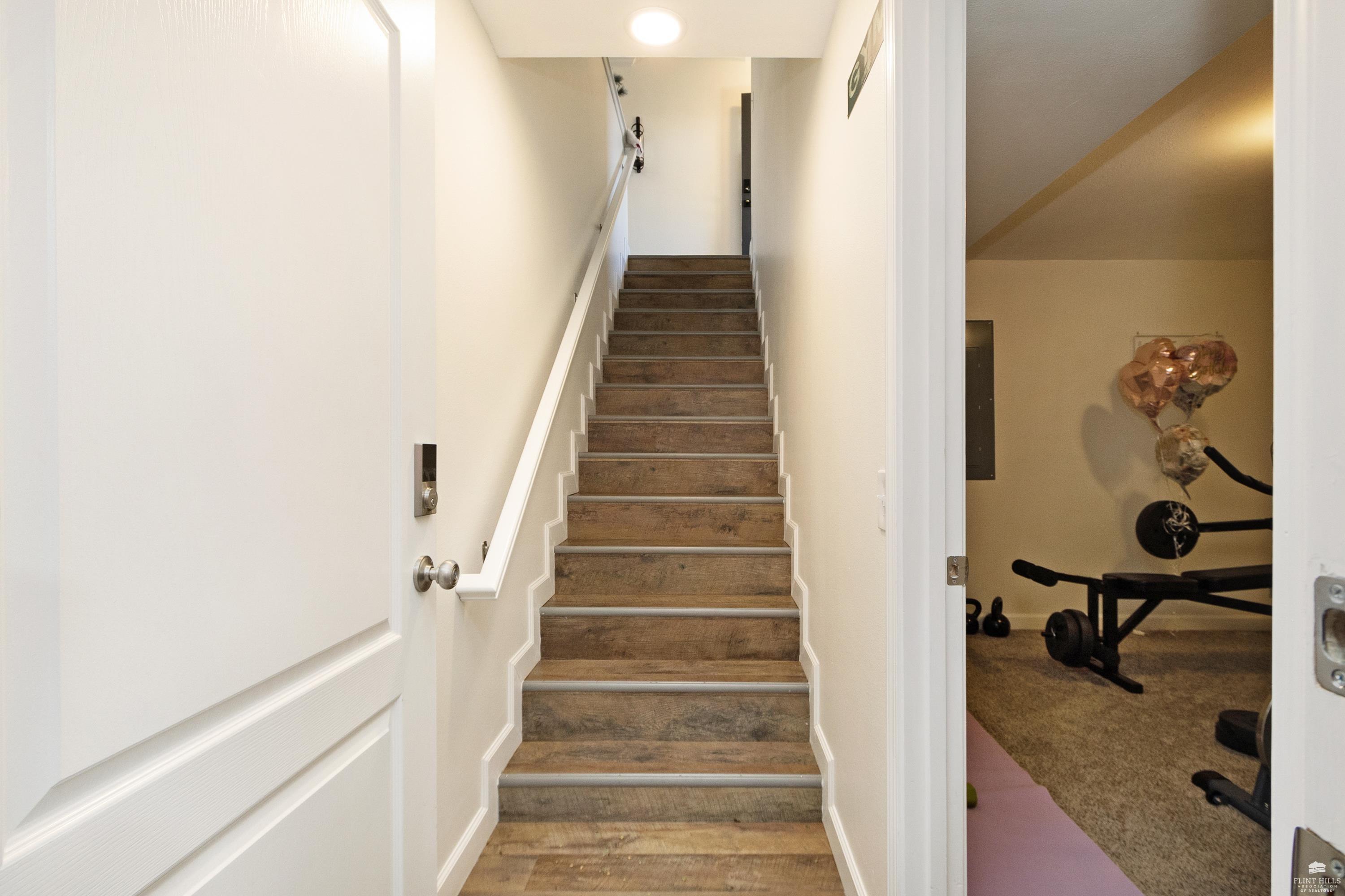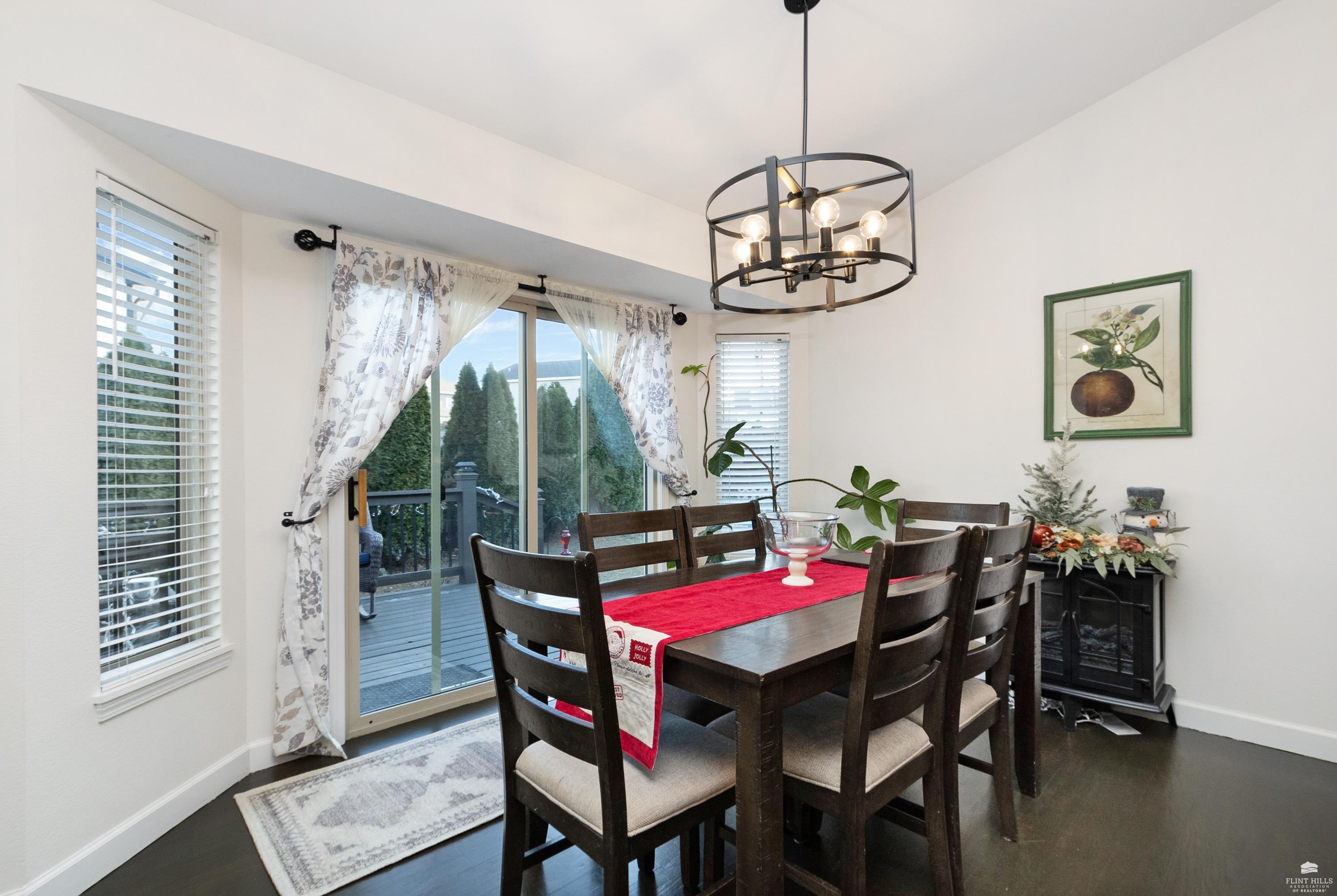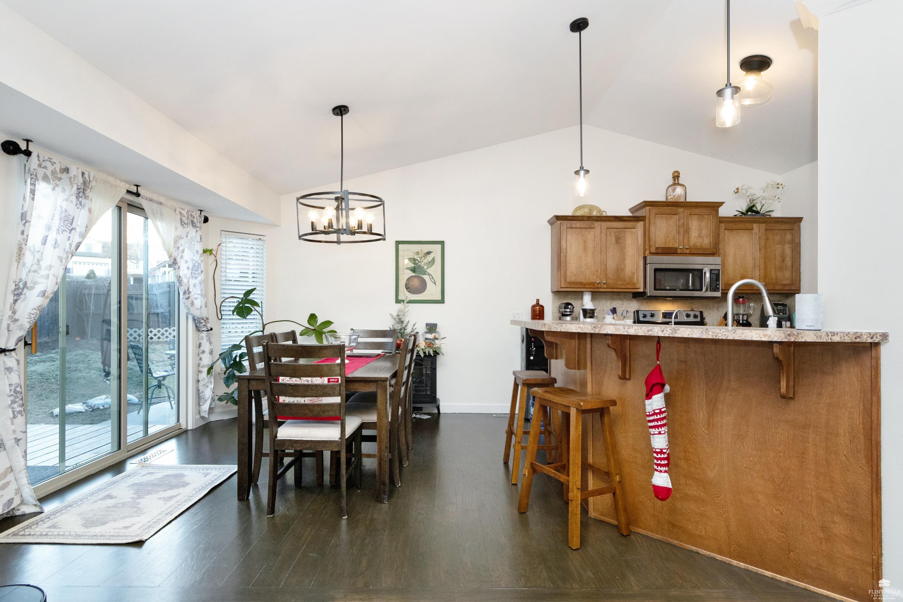 OPEN SUN FEB 8 FROM 1:30 PM UNTIL 2:30 PM This well-maintained West side residence offers 5 bedrooms and 3 bathrooms, situated on a desirable corner lot with a walkout basement. A 6th nonconforming bedroom in the basement provides flexible use as a home office, or fitness room. The kitchen features wood cabinetry, abundance of counter space, and a full walk-in pantry. The open-concept living room offers vaulted ceilings, creating a bright and spacious living area. The primary suite includes an over sized walk-in closet, an oversized private bathroom with a double vanity. The lower level offers a large family room with a full wet bar and private entrance, making it well-suited for game day or holiday entertaining. Outdoor features include a deck and a wood privacy fence. Conveniently located near the Ogden Gate at Fort Riley, Kansas State University, Colbert Hills Golf Course, Stagg Hill Golf Course and Annenberg Park.