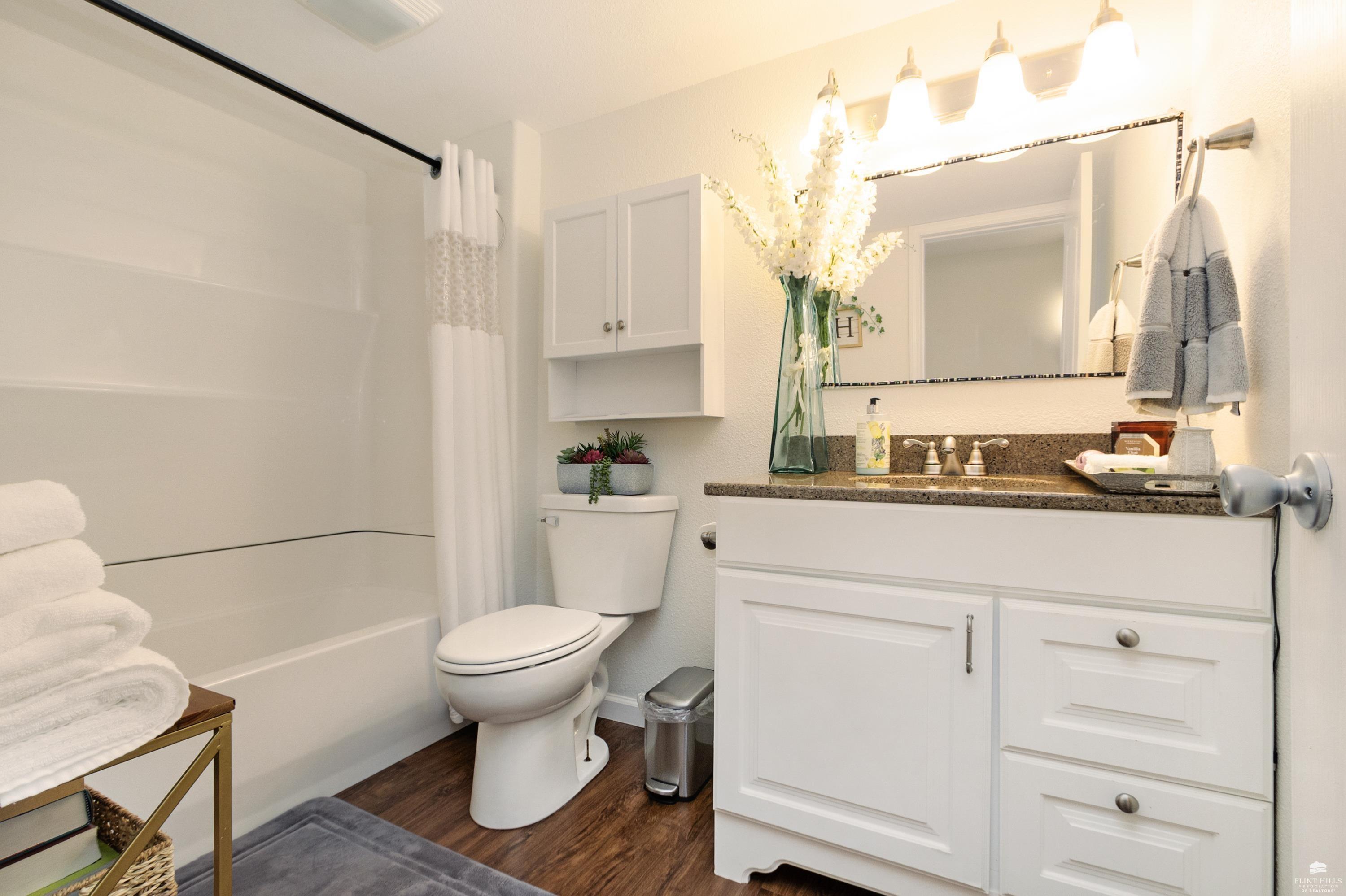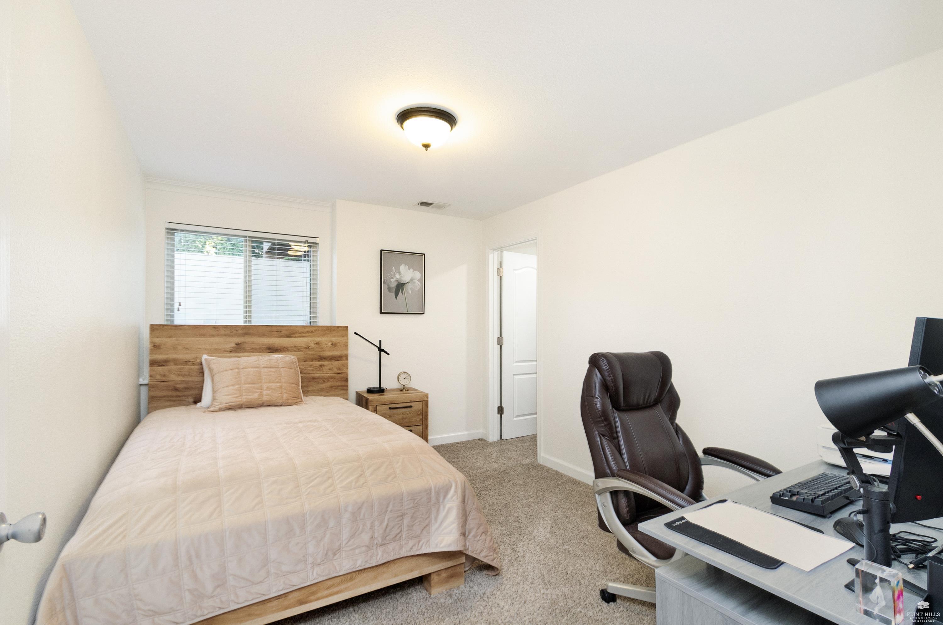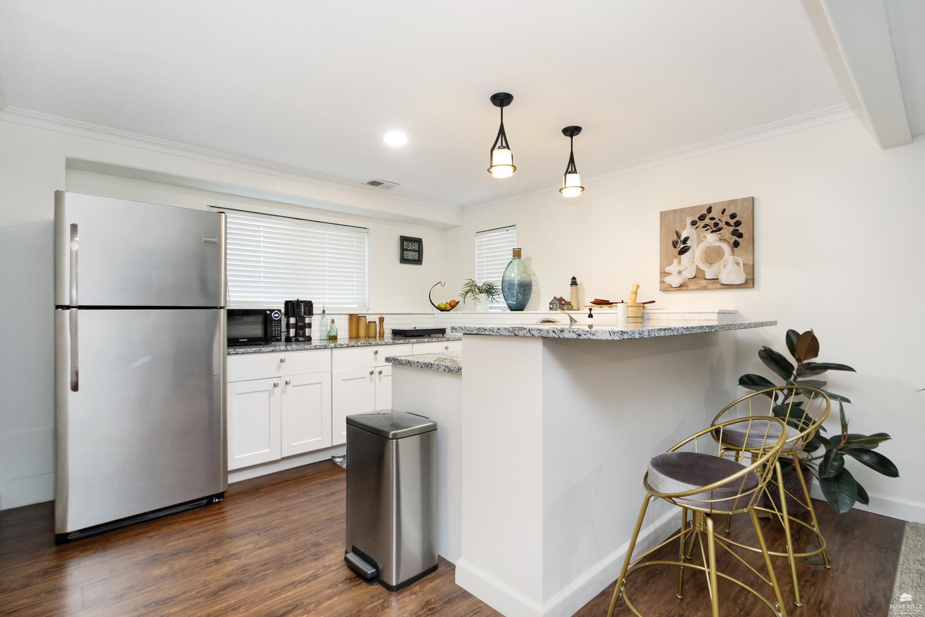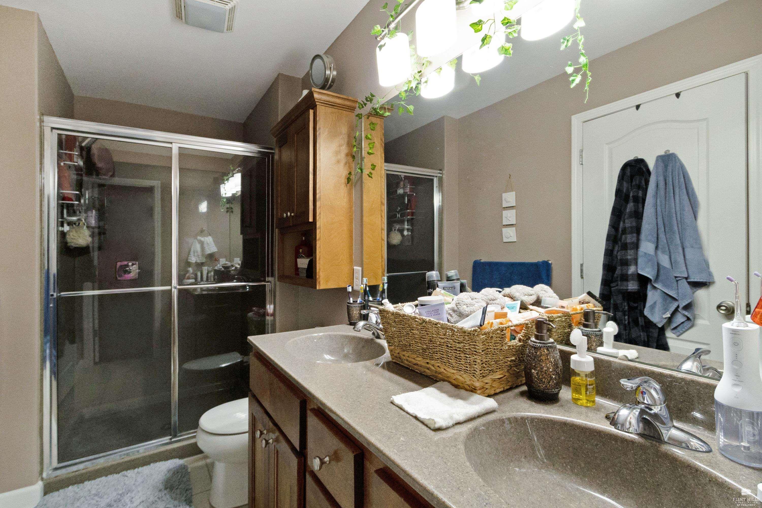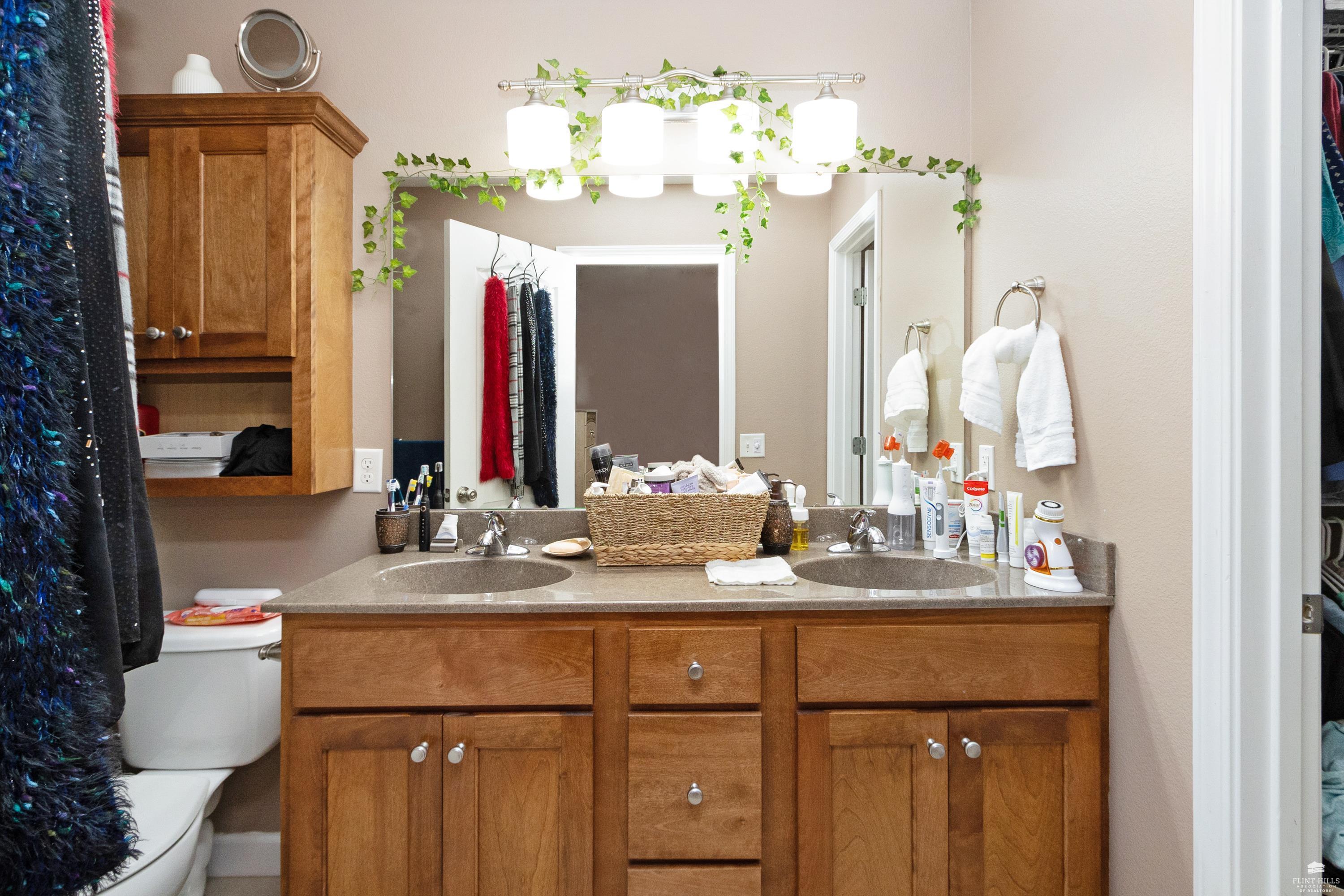 OPEN SUN FEB 8 FROM 1:30 PM UNTIL 2:30 PM This well-maintained West side residence offers 5 bedrooms and 3 bathrooms, situated on a desirable corner lot with a walkout basement. A 6th nonconforming bedroom in the basement provides flexible use as a home office, or fitness room. The kitchen features wood cabinetry, abundance of counter space, and a full walk-in pantry. The open-concept living room offers vaulted ceilings, creating a bright and spacious living area. The primary suite includes an over sized walk-in closet, an oversized private bathroom with a double vanity. The lower level offers a large family room with a full wet bar and private entrance, making it well-suited for game day or holiday entertaining. Outdoor features include a deck and a wood privacy fence. Conveniently located near the Ogden Gate at Fort Riley, Kansas State University, Colbert Hills Golf Course, Stagg Hill Golf Course and Annenberg Park.